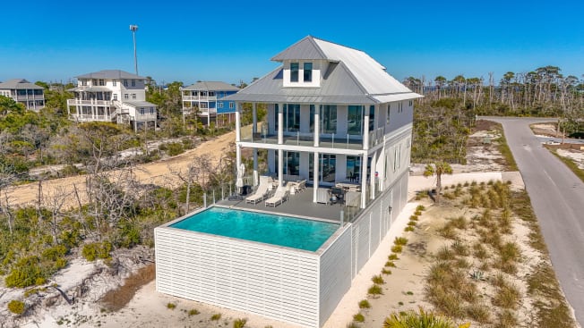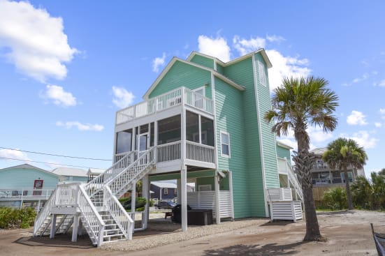 San Blas Bliss is a spectacular beach home situated on the north end of Cape San Blas, offering an ideal retreat for large families with its