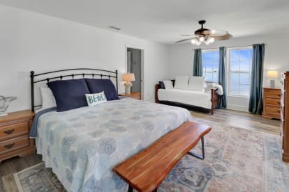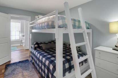 The second floor also has 2 bedrooms: (1 King + daybed, 1 twin over full bunk)