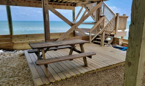 The first floor: includes a large (12'x25') sundeck with ample seating to enjoy the crashing waves and watch the kids play. Here you will experience some of the most amazing sunsets you have ever seen!