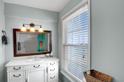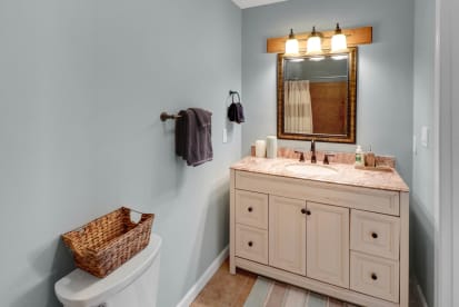 The kids will love their oasis: a bunk room with twin over full bunkbeds and their own flat panel tv! A full bathroom on this level has upgraded cabinetry with marble countertop and walk-in shower.