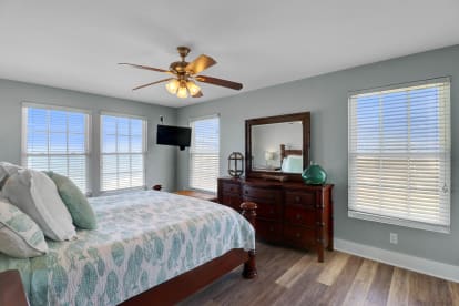The Master suite has a King bed and full bath with custom tile shower. It has beautiful views of the ocean from the bedroom. This room also features a Smart TV.