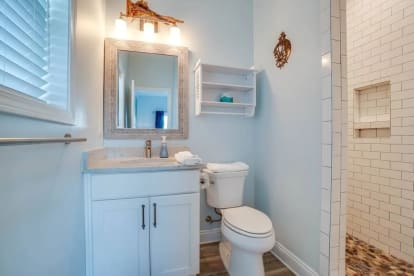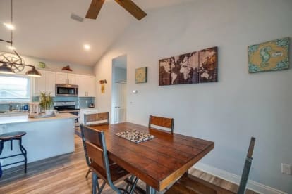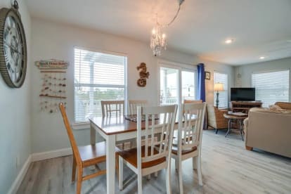 My husband and I searched for a rental to accommodate us and our two large dogs for a relaxing beach vacation. After booking Sunny Paws we were optimistic based on the previous reviews listed and excited about the amenities listed. Upon arrival we were blown away by the cleanliness of a pet friendly rental, other then the provided pet bowls and pet bed you would not know this rental hosts pets, it was spotless. The floor plan was open and well decorated. We slept in the king bedroom and loved the mattress. We were searching for the brand tag after the first night so we could purchase one for our selves. The kitchen was stocked with any kitchen utensils/pans we needed throughout our stay. The shared rental was close for a shared family but we had our privacy and didn’t realize till the end of the week how many dogs were in the home next door due to the separated fenced yards. The best part of the trip was sharing it with our dogs. They loved that they were able to go with us to beach, walks around the neighborhood, sun bathing on the deck and the screened in porch time in the evenings with us. The golf cart was a great amenity to get to and from the beach just a short distance across the road. There were lots of games and puzzles in the house and It took 6 days but I finally conquered the humming bird puzzle. We ate at Skullys, the cove, long bills and got fresh seafood to go from the seafood market and loved it all! Our hosts Andy and Travis were so accommodating and very responsive. We are already planning another trip to Sunny Paws. If you are searching for a place for you and the dogs, Just book it already!