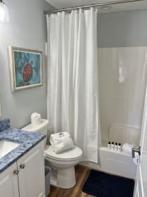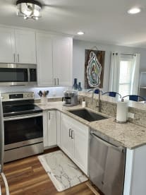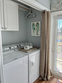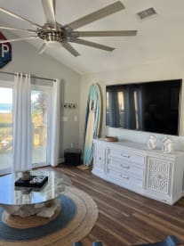 We loved our stay at Bay Watchin Too. The other reviewers aren’t kidding, this is the most well-stocked kitchen of any vacation rental I’ve ever experienced. The knives were all sharp! There were even salsa bowls, champagne coupes, a shrimp deveined, and an air fryer. The place was clean and comfortable, beds were cozy, and the coastal decor felt beachy and interesting without being cliche. The beach is a 10 minute walk away and skullys low country boil is right next door. Sunrise on the deck was beautiful. And the outdoor shower is a fun addition. Tylor was great to work with and gave us an early check in when we asked. I’d come back here with my family or a group of friends.