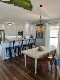 We took our teen son and his friend for a weekend getaway. I desperately needed a break and this home was clean, updated, and had a great view. They had a lot of little extras that were nice. The boys loved the pet alligator out front. I would definitely stay here again. The price was good. The public beach was a short drive down the road but not bad. We didn’t love the foam bed but I’ve slept in worse. It was a great weekend and we are grateful you shared your space with us!!! This would also be great for a girls weekend trip!