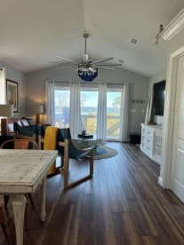 We had a great stay in an awesome place. This is the best vacation rental I have ever stayed in. The kitchen has everything you need to make great meals. The decor is beach’s shabby chic. It has adequate living room and kitchen space to be comfortable. The bedrooms are spacious and comfortable. It was VERY clean. The view of the bay is amazing. It was nice to walk out on the pier and just chill. We brought our kayaks and were able to launch them from the pier. It was really convenient. I loved sitting in the porch, drinking coffee and observing g the wildlife on the bay. It is convenient to the trading post, scallop cove, and the beach. You can either walk to the beach or drive to cape palms to access the beach. It’s an easy walk to Scully’s for some low country boil. Over-all it is was a great week, and I highly recommend this rental.