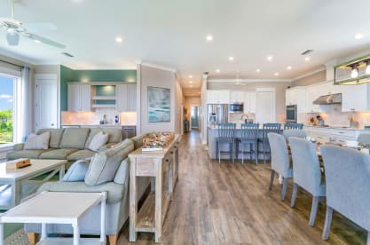 -Open living room, dining room, kitchen
