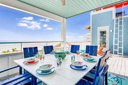 This ocean front beauty has over 4000-square-feet and sleeps 14 people across 6 bedrooms––all with spectacular ocean views making it ideal for families, corporate retreats, and special occasions. Stunning ocean views are awe inspiring from the main floors and 360-degree ocean and bay views from the covered watchtower which is the highest vantage point in CSB. The tower comes complete with a firepit table and Adirondack captain chairs to enjoy the sunrises over the Bay and unparalleled sunsets over the Gulf. Two bars, two living areas, custom cabinetry throughout, hand-crafted fixtures, furnishings, and fine art sourced from around the world, every inch of this home was carefully designed and curated with you, the guest, in mind.