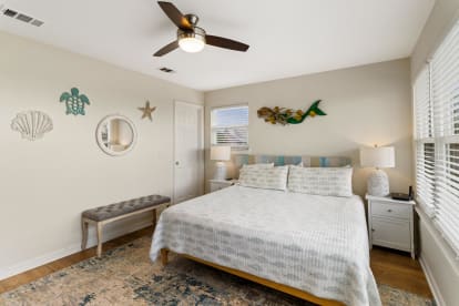 - Primary King bedroom with en suite bath and private gulf view screened porch
