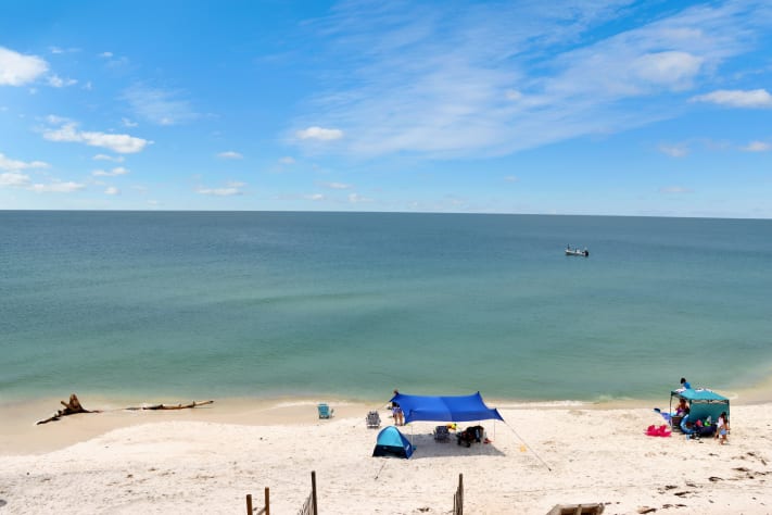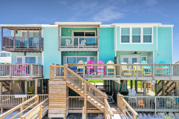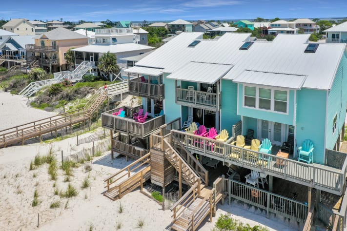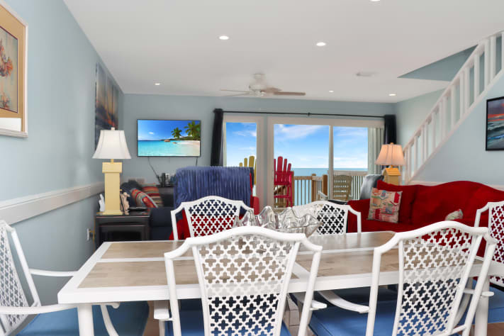 Turn vacation dreams into heavenly memories, beachfront at “Absolute Heaven”. Enjoy watching dolphins play in the clear blue water while basking in the sun, eating outside or sitting in the shade on one of three decks. Walk the white sand, pet friendly beach and enjoy amazing sunsets and starry nights. Relax and rejuvenate vacationing at “Absolute Heaven”.“Absolute Heaven” is dog friendly but not yet cat friendly, with an outdoor shower and charcoal grill. A large lower enclosed patio/sundeck has outdoor chaise lounges, patio table and chairs, and Adirondack chairs with side tables. A private covered deck off master bedroom has Adirondack chairs and a table. The deck off the living area has high chairs and shelf area for eating. The upgraded kitchen with granite countertops is well equipped and has a single-serving premium coffee maker and a regular coffee maker; a high end blender for refreshing icy drinks or smoothies; a side-by-side refrigerator with filtered water and ice; a microwave; lots of cooking utensils; a dishwasher and full size washer and dryer; ceiling fans in living and bedrooms.