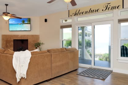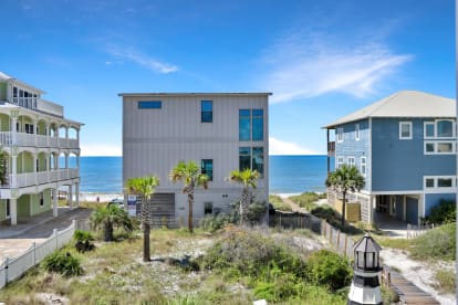 Explore the ultimate beachside retreat, perfect for families or groups of up to 14 looking for adventure. Immerse yourself in the tranquility of Gulf views from this stunning four-bedroom, four-bathroom beach house, Adventure Time. Enjoy easy beach access via a charming boardwalk that brings the salty breeze right to your doorstep, making the transition from sandy shores to the comfort of home a breeze. A variety of amenities are designed for the ultimate coastal living experience. An outdoor shower and towel rack make beach days carefree, while the large bunk room on the ground floor is perfect for kids or group lodging, complete with a TV room for entertainment. Relax or entertain on the main level, where an open living area with kitchen and dining space offers panoramic beach views from every angle. And when it's time to unwind, the luxurious top-floor master suite awaits, featuring a private deck and wet bar. Just steps away, indulge in the community pool with relaxing loungers and a picturesque beach view. Welcome to your personal slice of paradise, where every day feels like an adventure.