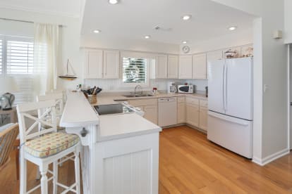 Both kitchens are well-stocked, each with dining areas, and the gulf front living rooms have large smart TVs.. The master bedrooms are gulf front, have king-size beds and private baths. Other bedrooms include 2 queen bedrooms each with a detached bath. 2 twin bedrooms each with private baths. The 2nd level offers a king bedded suite with private bath, a smart tv and large adjoining lounge area for games or cards. The views from this area of the gulf and bay sides of the house are spectacular!