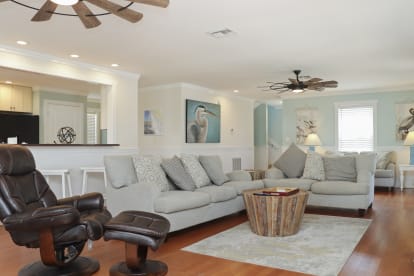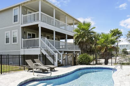 For convenience, there's a two-car garage with a full bath, making it easy to access the pool area without having to go through the house. And after a day at the beach, rinse off in the outdoor shower before heading inside to relax.