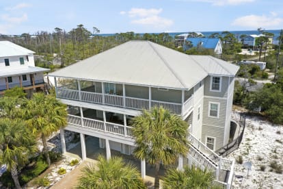 One of the highlights of Cape Dreamin' is the two levels of decks that wrap around two sides of the house. From these decks, you can enjoy stunning views of the beach on one side and the private pool and St. Joe Bay on the other. Imagine sipping your morning coffee while watching the sunrise over the bay or enjoying a glass of wine as you watch the sunset into the gulf.