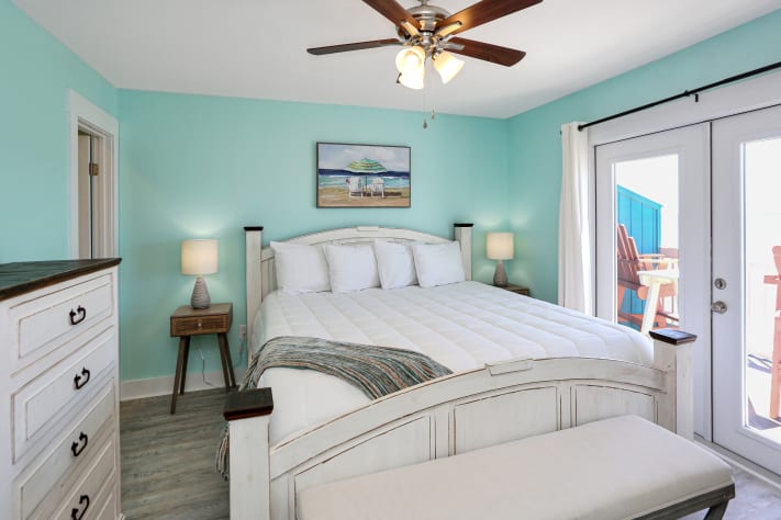 At day’s end, retreat upstairs to one of the three bedrooms for a restful night’s sleep. From the gulf front, master bedroom, you can gaze across the horizon from the open sundeck. The kids will enjoy piling up in the bunk room to enjoy a movie at night, and from the additional bedroom, there is a small deck overlooking the bay.