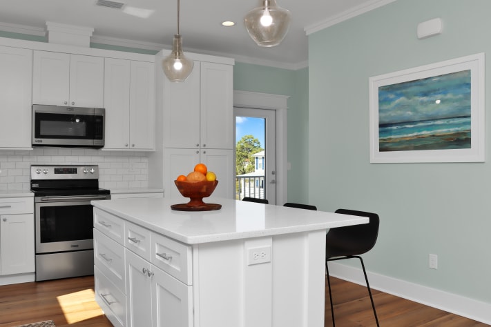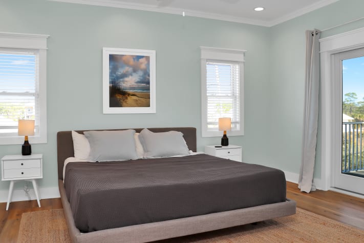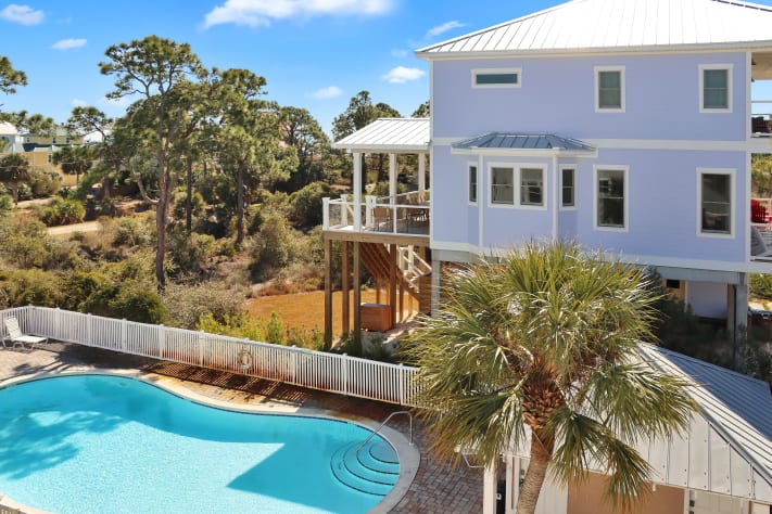 The beautiful Oystercatcher vacation rental in Cape San Blas is waiting for you! With four bedrooms, it can accommodate up to eight guests and offers a perfect blend of comfort and coastal elegance. The house is next to the community pool, providing easy access for a refreshing swim. You can enjoy breathtaking beach views from the decks and relax on the screened deck with a ping pong table, an outdoor dining table, and a cozy sitting area. These amenities make it an ideal setting for both relaxation and entertainment.This coastal home is designed with the vacationer in mind, with plenty of outdoor space and a comfortable interior. The main level includes an open kitchen, dining, and living area. As a convenience, a half bath is located off the kitchen, and the master bedroom is just beyond the living room. The master is a large room with private access to the deck, a king bed, a TV, and a full bathroom.