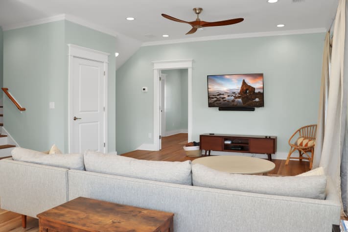 On the top floor are the remaining three bedrooms, with a second master bedroom complete with a queen bed, private deck access, TV, and a full bathroom. Step into one of the two cozy bedrooms featuring comfortable double beds and the added versatility of a twin pull-out trundle. These two rooms combine snug charm with practicality, offering a space where relaxation meets convenience.