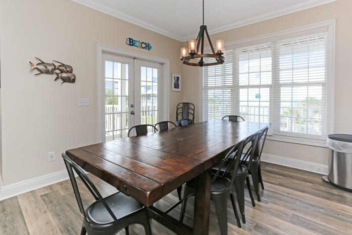 The top floor houses the beautifully decorated, gulf view master suite with extra-large walk-in closet. The master bath includes a jetted tub for two, step-in rainfall shower, double vanities, private water closet and linen closet. The private veranda is perfect for gazing at the gulf or taking in a sunset with wicker seating for 6 and 4 bar-height Adirondack chairs. There is also a bunk room with a duo and beautiful bay views.