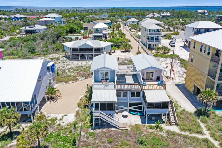 Whataday is an excellent, gulf front duplex centrally located on Cape San Blas just behind the Trading Post. It is a perfect spot for two small famili