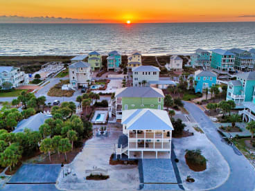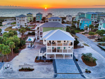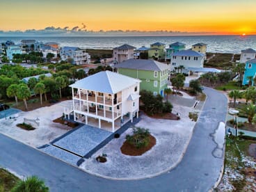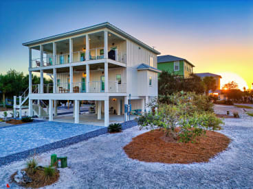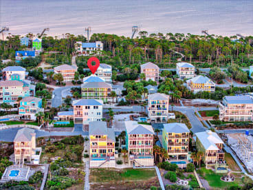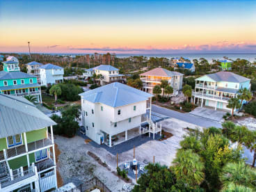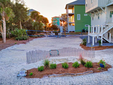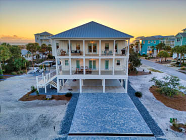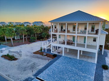 Tucked along the pristine shores of Cape San Blas, Lulu’s Beach House offers the perfect getaway for families and beach lovers seeking a blend of comfort, style, and relaxation. This stunning 5-bedroom, 4.5-bathroom vacation home, nestled in the exclusive Seagrass community, invites you to unwind in coastal luxury. A brand-new, custom-built residence, Lulu’s Beach House provides an ideal retreat from the hustle and bustle of daily life. The moment you step through the door, you’ll be greeted by a beautifully designed interior that combines elegance with coastal charm. Each bedroom features unique décor and furnishings, creating a serene space for rest after a day spent enjoying the sun and surf. At the heart of the home is the expansive, open-concept living area, where comfort meets sophistication. The spacious gourmet kitchen boasts a large island bar, ample seating, and a cozy coffee station—perfect for starting your mornings off right. The open layout is ideal for gatherings, allowing up to 15 guests to dine, relax, and enjoy each other's company without feeling cramped. The covered deck off the living room offers a tranquil spot to enjoy outdoor meals or simply relax with the fresh ocean breeze. From here, you can easily access the covered space beneath the house, where you’ll find convenient parking, as well as a charming outdoor gathering area complete with comfortable seating, a fire pit, and twinkling café lights—ideal for evening relaxation under the stars. For a little friendly competition, the yard features a sport court for beach volleyball or mini soccer. As a guest of the Seagrass community, you’ll have access to a refreshing pool located just steps from the house, enhancing the appeal of this coastal haven. Whether you're spending your days splashing in the pool, strolling along the beach just 90 seconds away, or enjoying the outdoor spaces, Lulu’s Beach House is your ultimate destination for a memorable family beach retreat. There is a fishing kayak, paddle board, beach chairs, and sun shade provided for the perfect beach day!