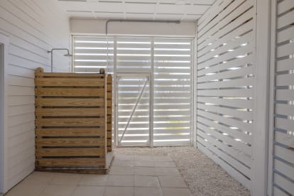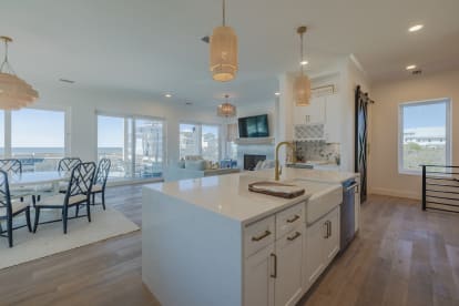 Practicality meets luxury with a dual-car garage and a spacious mudroom to store all your towels and beach equipment. The house also boasts an outdoor shower, allowing guests to rinse off the sand and salt after a beach day. With no neighboring houses, you’ll enjoy unparalleled privacy throughout your stay.