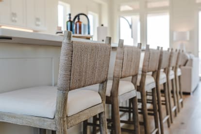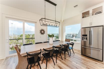 Dining: Seats 12 at the main table, plus 6 at the oversized island