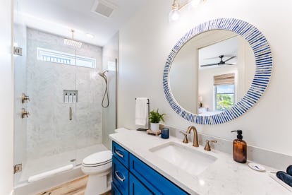 This reverse floor plan showcases the best of Cape San Blas. Here you’ll find the kitchen, dining, and living spaces, along with a powder room and wet bar—all overlooking sweeping Gulf and Bay views.