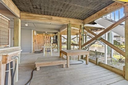 At ground level is a carport with ample parking and you'll find beach chairs and toys in the guest closet, an enclosed outdoor shower to rinse off after a day at the beach, and even a dog-washing station! We also offer a beach cart, and a cooler and our kichen is extremely weel equipped.