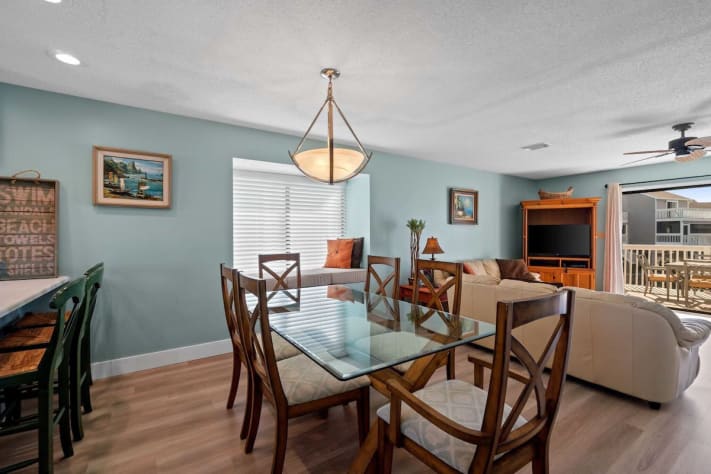 It was a nice getaway. Even though it wasn’t directly on the beach you literally just drive inside the neighborhood to park at the country club and a nice and very short boardwalk takes you right on to the beach. You don’t feel wore out getting down to the beach or leaving. The neighborhood is super quiet which was nice! The home was very clean to be a dog friendly home….. we didn’t even see hair from other animals. Our dogs are non-shedding so we prefer no hair but wanted to bring our dogs. No hair was found and everything was extremely clean!