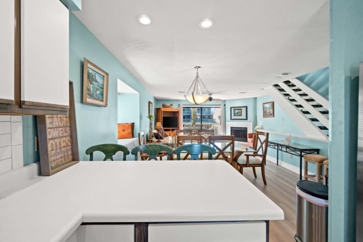Location is great and perfect space for us and 3 kids! Wish there was another bathroom on top level or mid level that accessible without having to go through bedrooms. Refrigerator was leaking and ice machine e kept breaking. The beds were old and squeaky and kitchen and bathrooms need updates. Overall great location and we had a beautiful time!
