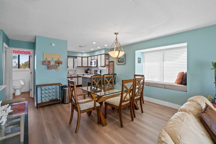 From the well stocked kitchen to the dining area, with seating for six, this home provides a great space for shared family meals.
