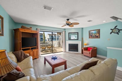 The Space:Welcome to Blame It on the Sunset, a beautiful home nestled along the peaceful pondfront in Barrier Dunes.