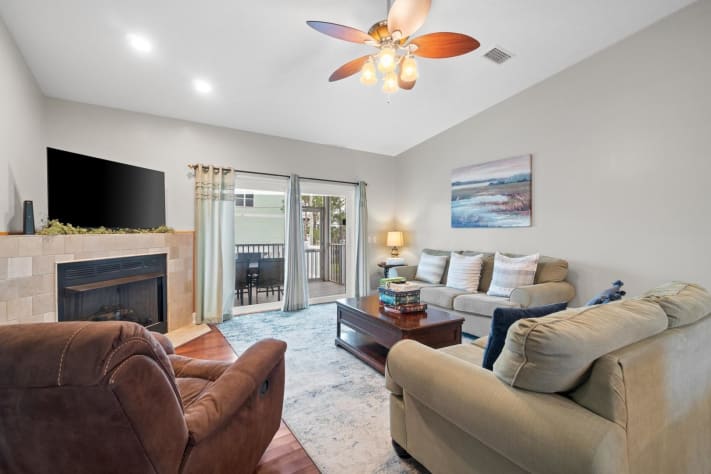 Spacious living area with smart TV + queen sleeper sofa
