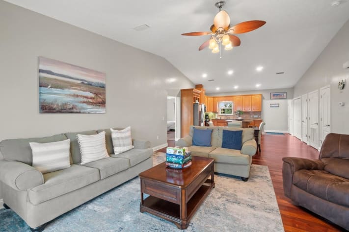 Hooked on the Cape by Panhandle Getaways is a classic 3-bedroom, 2-bathroom beach house just a short walk from the sugar-white sands of Cape San Blas. With a fun game room, spacious living areas, and provided beach gear, this home is perfect for families and groups seeking a laid-back coastal getaway.