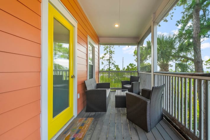 Sandy Toes is a 2BR/2.5BA pet-friendly beach house in Port St. Joe with screened porches, modern amenities, and space for 6 guests.