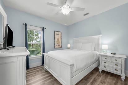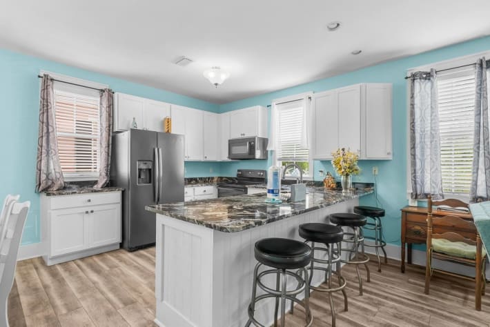 Panhandle Getaways provides a starter kit to help until you make a grocery run: dishwasher soap, small laundry powder, hotel-size bath amenities (shampoo, conditioner, soap bar – not restocked), 1 roll of toilet paper per bathroom, and 1 paper towel roll in the kitchen. All bed linens & bath towels provided (bring beach/pool towels).
