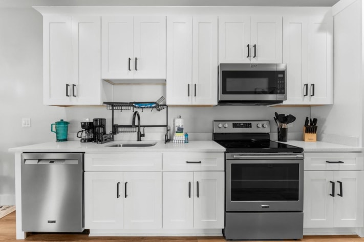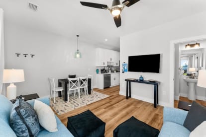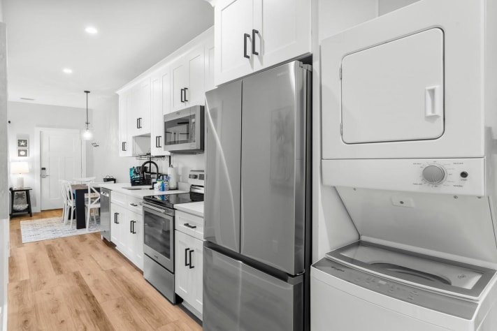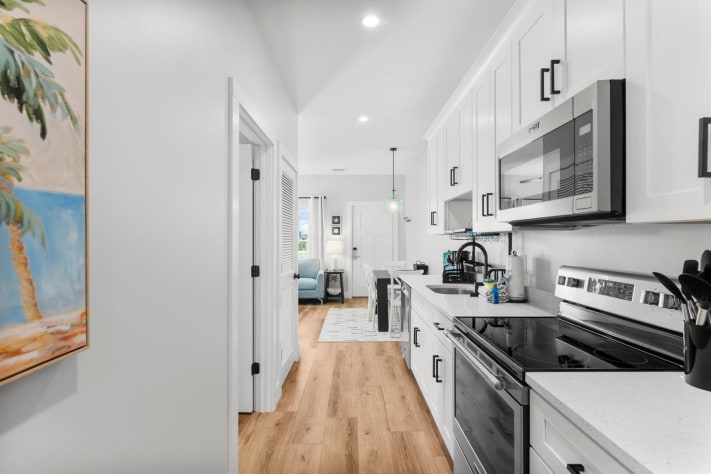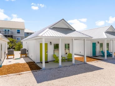 Pet-friendly 2BR beach cottage near St. Joseph Peninsula State Park with Gulf and bay access. Features a full kitchen, smart TVs, washer/dryer, and co