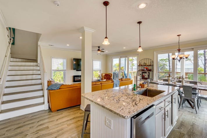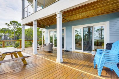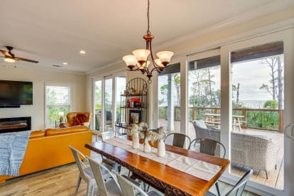 Trudy May’s Bayhouse is a bayfront 4BR/3BA home on Cape San Blas with a 500' dock on St. Joseph Bay and beach access just across the street. Sleeps up to 10 and is ideal for families, boaters, and anglers. Enjoy calm bay waters for kayaking and fishing, multiple outdoor spaces with sunset views, a screened porch, fire pit, and a fully equipped kitchen—minutes from St. Joseph Peninsula State Park and Port St. Joe.| From/To | Nightly | Weekend | Weekly | Monthly | Min Nights |