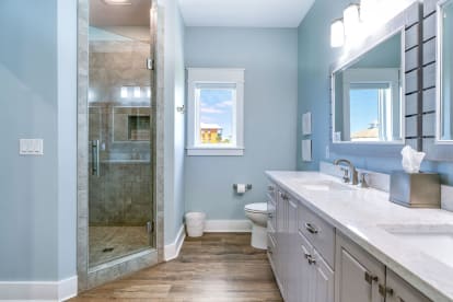 Double vanities and a spacious closet