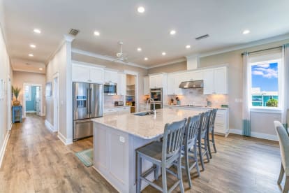 -Large island with seating plus a dining table that accommodates the whole group