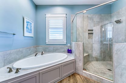 Large bathroom with soaking tub and walk-in shower