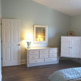 Upstairs the master bedroom has a king size bed, tv and lovely bay view off the private deck. Large master bath with glass enclosed shower ,separate tub and two sinks. The guest bed room has a queen size bed,tv and private bath. It also has a nice deck with view of the play ground. Two extra blow up beds are perfect for extra kiddos!