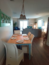 This is our second year staying at Cape San Blas and Barrier Dunes in this same townhouse. It is spacious, clean, well stocked, and includes a beach wagon, chairs and umbrella (among other beach items). Any hurricane damage to this townhouse has been completely repaired and our stay was just as nice, or nicer, than before the hurricane in fall 2018. The complex and beach are very dog friendly. Great sunrises can be seen from the townhouse overlooking the bay. The owner is very nice, hospitable and easy to rent from. We plan to return to this same townhouse again next year!
