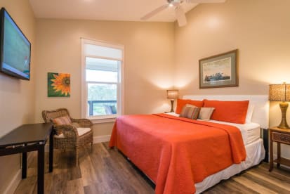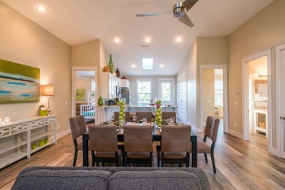 We had family from Michigan and Florida stay here to spend the holidays. It was the perfect location for our long-anticipated vacation! The facilities are spacious and immaculate, the kitchen is huge and easy to cook in, the porches are lovely, it's a short walk to the beach, the swim spa was so much fun! It was also really nice to have all the bathroom/bedrooms/living space on one floor, especially if there's anyone with mobility concerns in your party. We would highly recommend anyone staying here (and are already looking at potential dates to come back!).