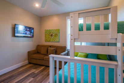 PLEASE CLICK THE BOOK NOW BUTTON FOR AVAILABILITY AND DIRECT BOOKING#1-3 King Size Bedroom with beautiful Bay Views. A mounted television with Smart TV technology. (Direct TV, Use your Netflix, Hulu, Amazon Accounts and more) #4 Bunk Bed and a Queen sleeper sofa are perfect for children to have their privacy with their own mounted Smart TV